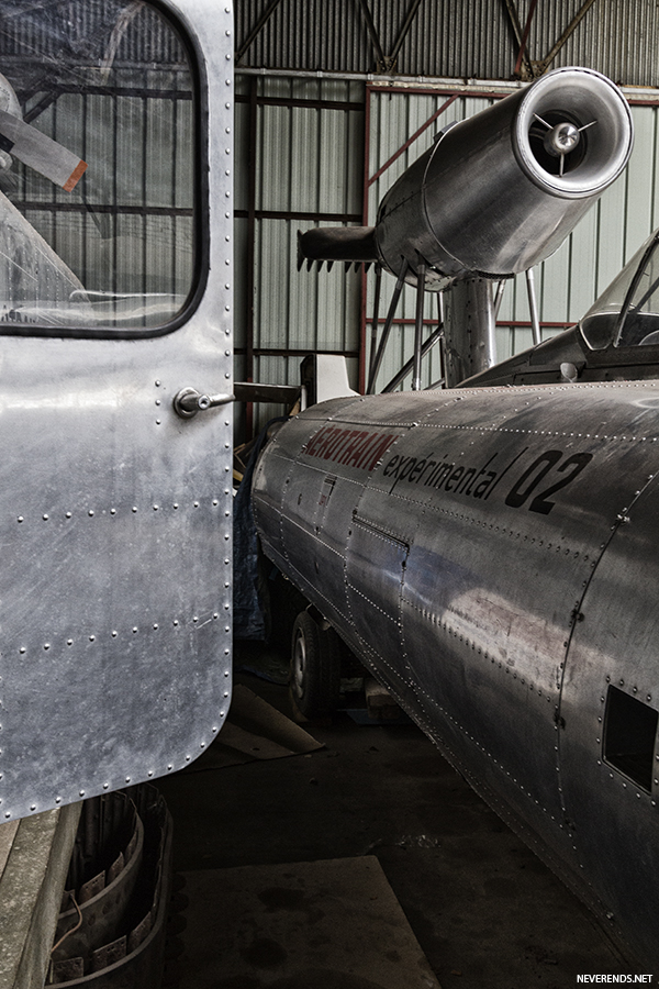 A mi-chemin entre un train et un avion, un design futuriste digne de la Delorean de Retour vers le Futur, ces deux rescapés, témoin de cette impressionnante invention, semble sortir d’un film de sciences fiction des années 80. En les voyant ainsi rangés dans leur hangar, on a du mal à s’imaginer que ces engins de tôle rivetées ont atteint des vitesses supérieures à celles du TGV (320 km/h). Plusieurs modèles ont été développés, hormis les modèles 01 et 02, les autres n’existent plus.